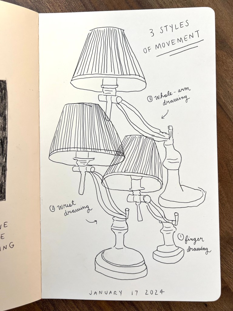 I started off 2024 by participating in a 30 day drawing challenge run by Wendy MacNaughton’s GUT or the Grown-Ups Table. The aim of the challenge is to start a daily drawing habit and equip yourself with the skills, tools, and community to do so beyond the 30 days. The 10-minute prompts, delivered daily, included mini lessons in art, art history, self reflection, and creativity.